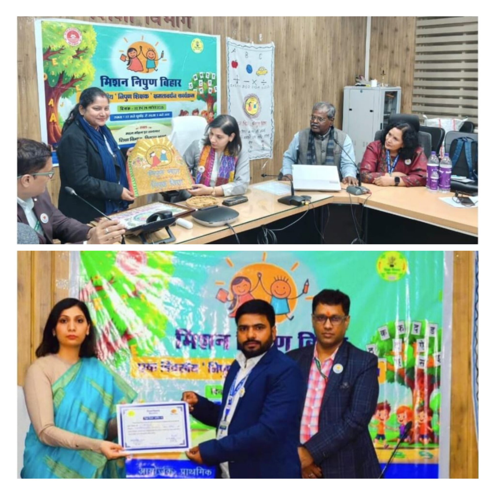 मिशन निपुण बिहार के तहत पूर्णिया के दो शिक्षक बने निपुण शिक्षक, पटना में हुआ सम्मान