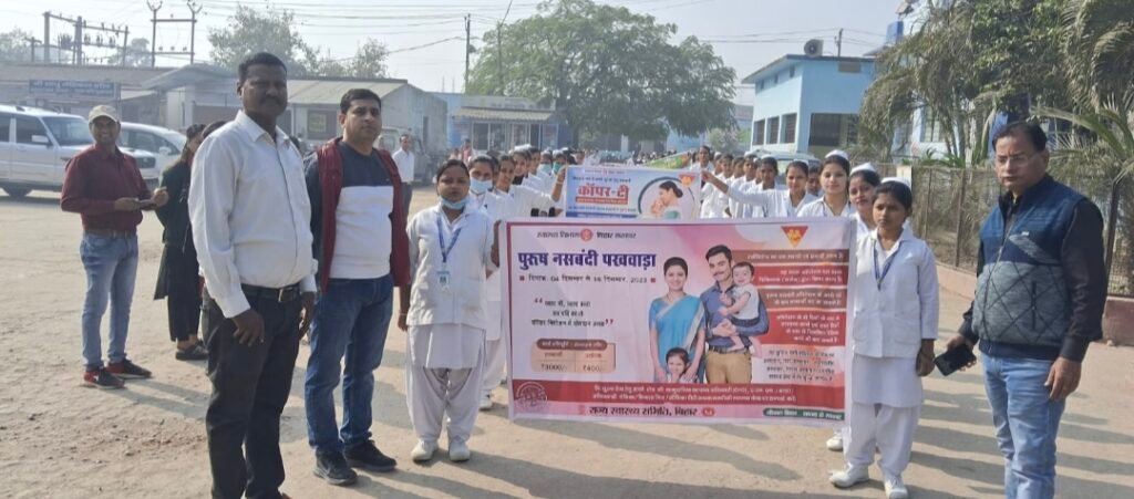मोतिहारी। जिले में बढ़ती जनसंख्या की रोकथाम को लेकर पुरुष नसबंदी पखवाड़ा का आयोजन किया जा रहा है। इसके तहत सदर अस्पताल कैंपस से एएनएम व अन्य स्वास्थ्यकर्मियों द्वारा जागरूकता रैली निकाली गई।