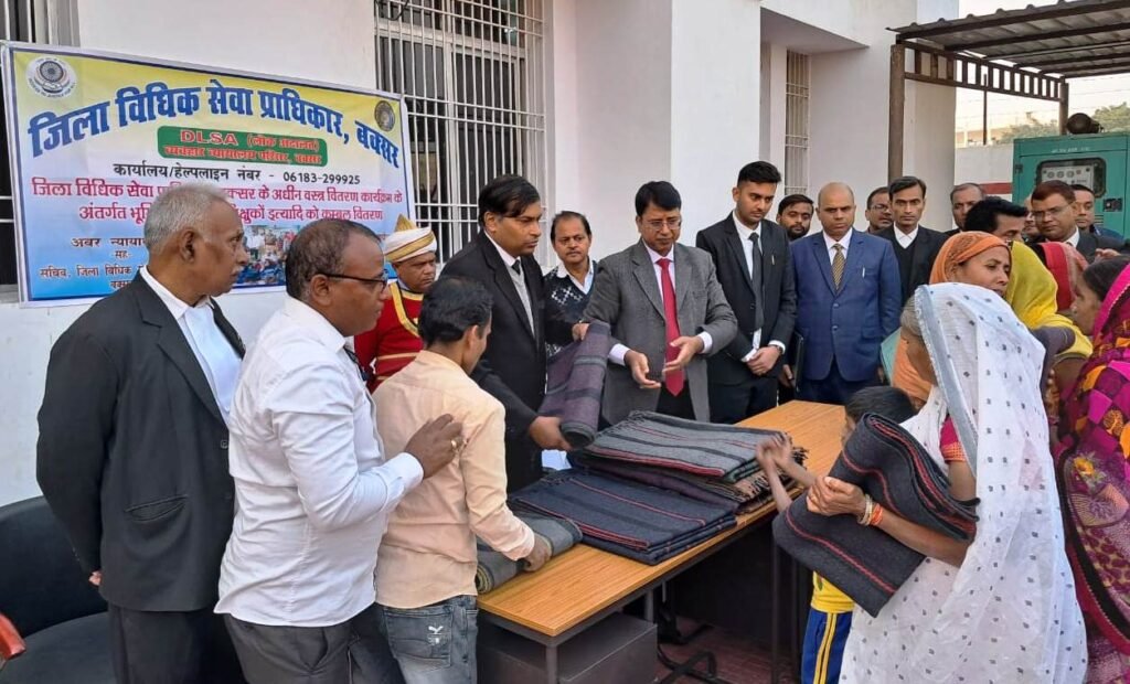 बक्सर. जिला विधिक सेवा प्राधिकार, बक्सर द्वारा वर्ष 2023 में किए गए विभिन्न कार्यक्रमों के अंतर्गत शुक्रवार को अपराहन में कार्यालय स्थल, विधिक सेवा सदन, व्यवहार न्यायालय, बक्सर के प्रांगण में गरीब, असहाय, निर्धन, विकलांग, भिक्षुक आदि लोगों को चिंिहंत कर जिला प्रशासन, सामाजिक सुरक्षा कोषाग, बक्सर की सहायता से कंबल वितरण का कार्यक्रम किया गया.