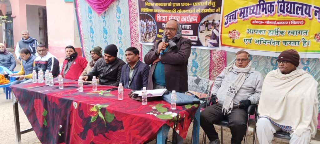 डुमरांव. चौगाई प्रखंड अंतर्गत नचाप हाईस्कूल में गुरूवार को प्रखंड विकास पदाधिकारी चौगाई तेगबहादुर सुमन की अध्यक्षता तथा विद्यालय के शिक्षक अमित कुमार सिन्हा के संचालन में शिक्षा संवाद कार्यक्रम का आयोजन हुआ. विद्यार्थियों के लिए सरकार द्वारा संचालित विभिन्न योजनाओं मुख्यमंत्री साईकिल योजना,