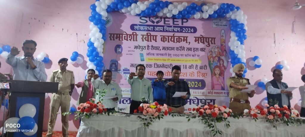 कार्यक्रम के दौरान ‘मधेपुरा है तैयार, मतदान करेंगे सब इस बार’ ‘चुनाव का पर्व, देश का गर्व’, ‘मेरा पहला वोट देश के लिए’, ‘मतदान करना एक बड़ी जिम्मेदारी अबकी बार 18 की बारी’ आदि नारे लगाए गए। अंत में सबों ने लोकतंत्र में अपनी पूर्ण आस्था रखते हुए यह शपथ ली कि वे अपने देश की लोकतांत्रिक परम्पराओं की मर्यादा को बनाए रखेंगे
