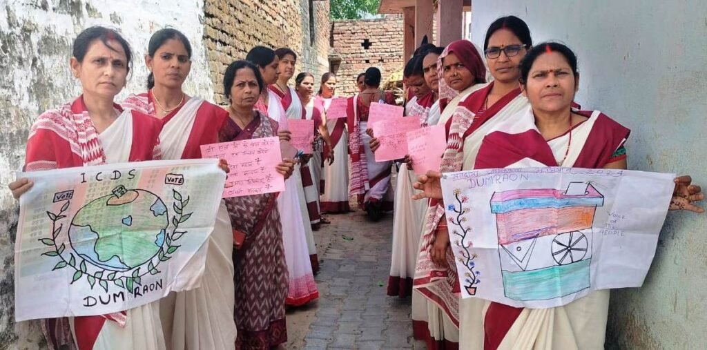 मतदाताओं को जागरूक करने को लेकर सेविकाओं ने लिया शपथ, कार्यालय में लोकतंत्र पर चर्चा