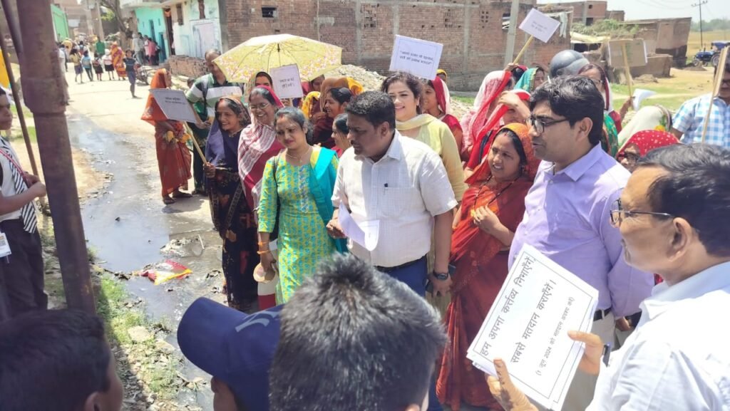 एसडीओ, बीडीओ, सीडीपीओ ने नुआंव में गली-गली भ्रमण करते हुए दरवाजे पर बैठे लोगों को मतदान में भाग लेने की अपील करने के साथ कर्मियों ने पोस्टर चपकाएं. इससे पहले आंगनबाड़ी केंद्र पर उपस्थित सेविकाओं, महिलाओं को मतदान के प्रति जागरूक किया. वहीं महिलाओं ने भी मतदान के प्रति अपनी-अपनी बाते रखी.