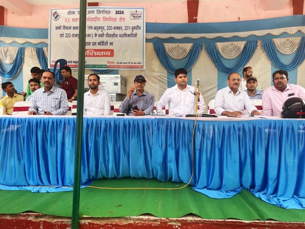 बक्सर। आसन्न लोकसभा आम निर्वाचन 2024 के सफल संचालन को लेकर जिला पदाधिकारी, श्री अंशुल अग्रवाल के निर्देशानुसार 33-बक्सर लोकसभा क्षेत्र के सभी पीठासीन पदाधिकारियों के प्रशिक्षण कार्यक्रम का आयोजन एमपी हाई स्कूल बक्सर में किया गया।
