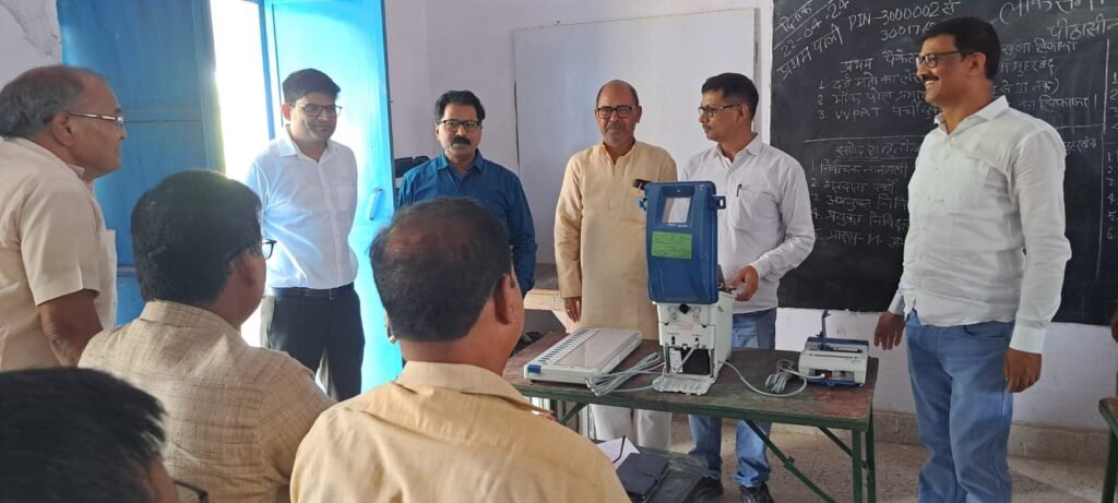 उसके पश्चात मॉक पोल प्रमाण पत्र एवं अन्य सभी प्रकार के प्रपत्रों को भरने के बारे में बताया गया। बताया गया कि चुनाव समाप्ति के पश्चात सभी प्रकार के विहित प्रपत्रों को सही ढंग से सावधानी पूर्वक भरकर उसे जिला प्रशासन द्वारा बनाए गए कलेक्शन सेंटर पर आकर जमा करना है।