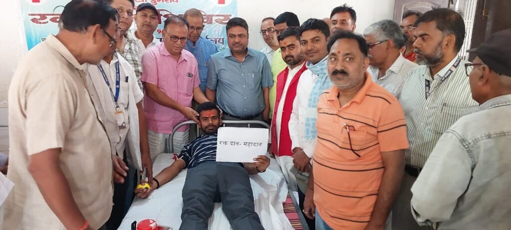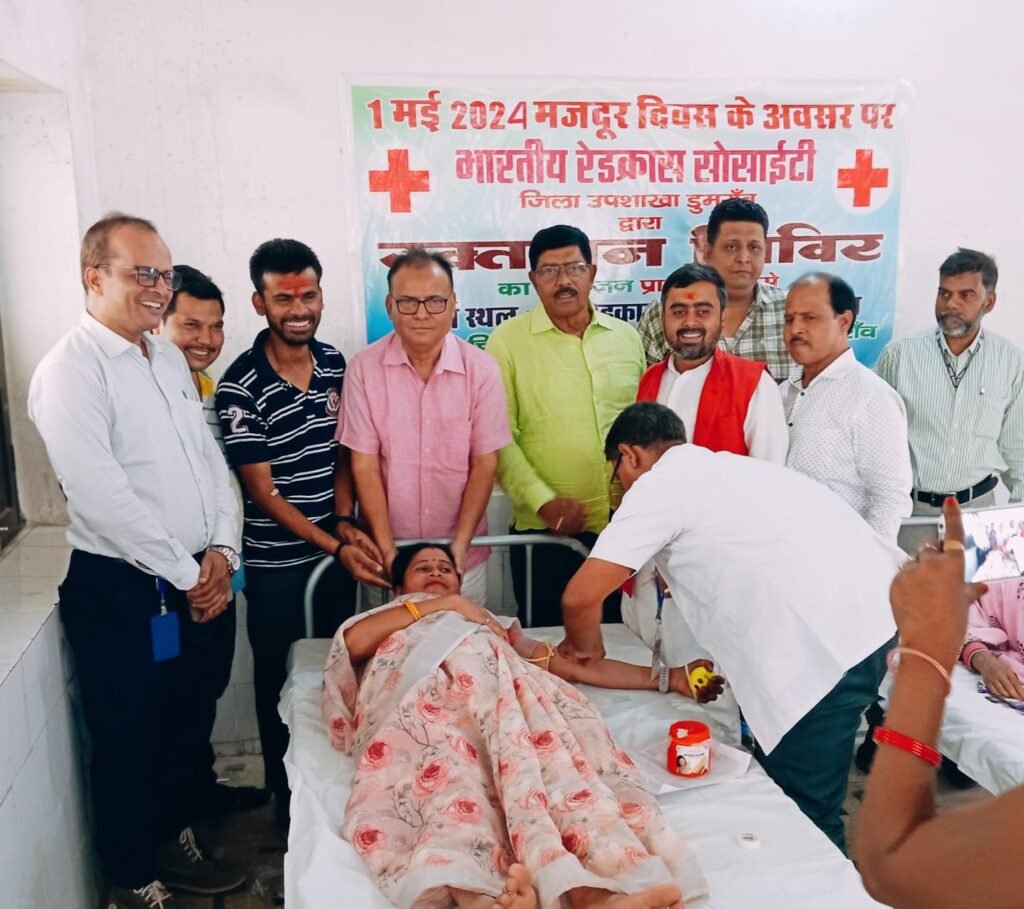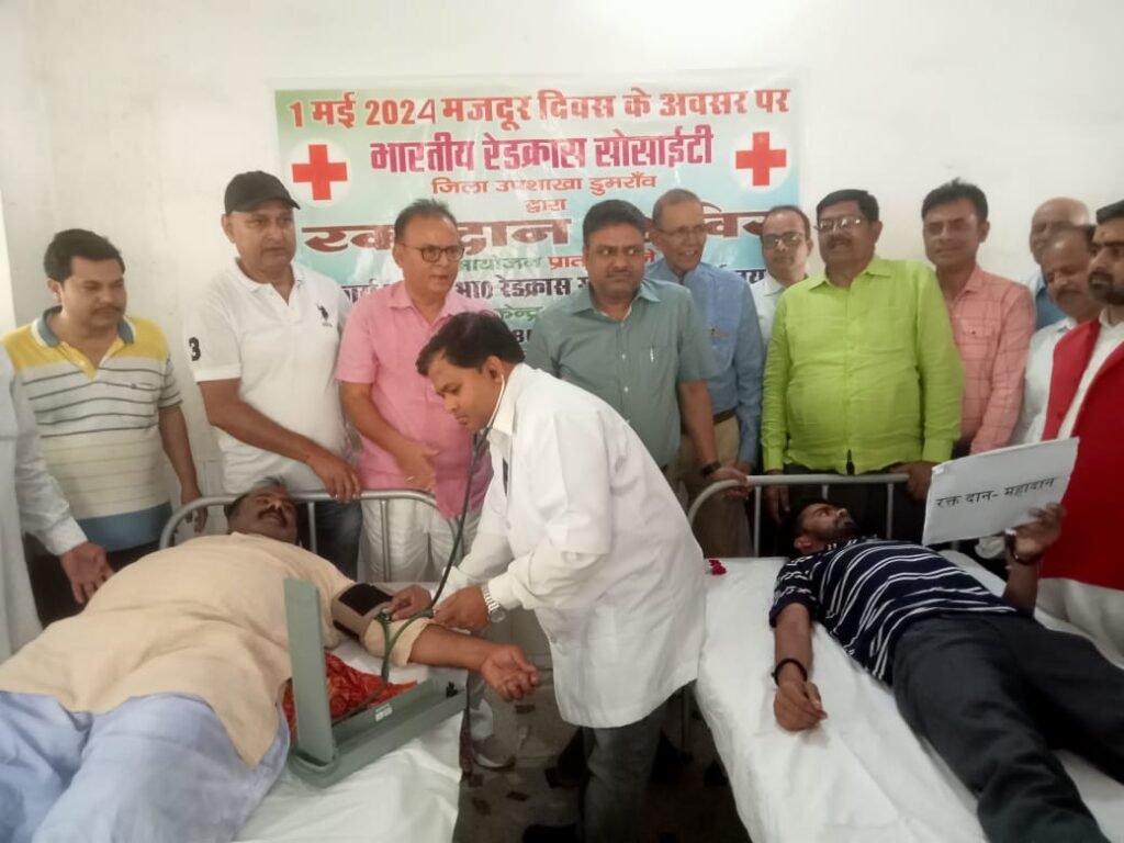 डुमरांव। मजदूर दिवस पर छठिया पोखरा स्थित माधुरी चिकित्सालय परिसर में बुधवार को रेड क्रॉस सोसायटी उप शाखा डुमरांव के तत्वावधान में रक्तदान शिविर का आयोजन किया गया। शिविर में डुमरांव के एसडीओ राकेश कुमार ने भी अपनी उपस्थिति दर्ज कराई। रक्तदान शिविर में रक्तदाताओं की हौसला अफजाई की।