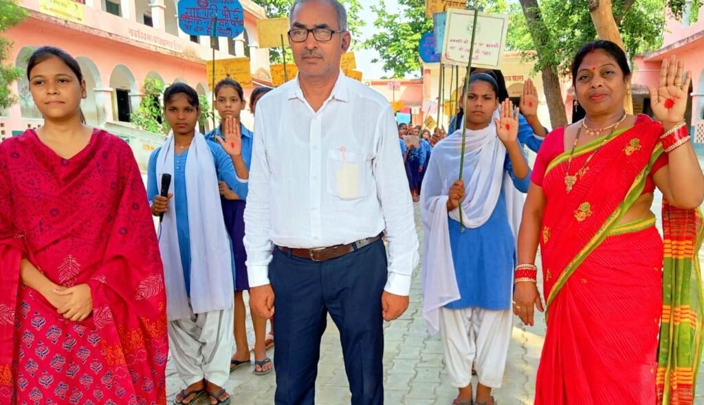 राजकीय मध्य विद्यालय घेउरा की छात्राओं ने निकाला जागरूकता रैली, सहायक शिक्षिका ने कहां महावारी को पाप न समझो, महावारी कोई बिमारी नहीं