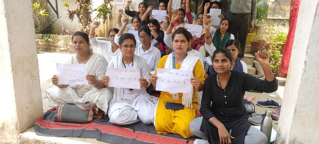डिजिटल अटेंडेंस नहीं दर्ज करने व समान काम का समान वेतन को लेकर स्वास्थ्य संविदा कर्मियों का अनिश्चितकालीन हड़ताल शुरू