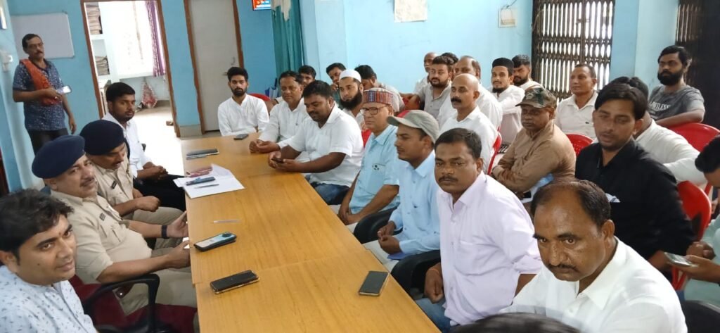 पर्व पर साफ-सफाई व बिजली सहित सुरक्षा संबंधित बिंदुओं पर चर्चा हुआ. मौके के पर बीडीओ संदीप कुमार पांडेय, सीओ समन प्रकाश, नप के दुर्गेश सिंह, वार्ड पार्षद अमर पासवान, धीरेन्द्र कुमार निराला, धीरज कुमार, मोहन जी गुप्ता, इस्लाम अंसारी, भुअर सिद्दीकी, सोहराब कुरेशी, राजा सहित अन्य लोग मौजूद थे.
