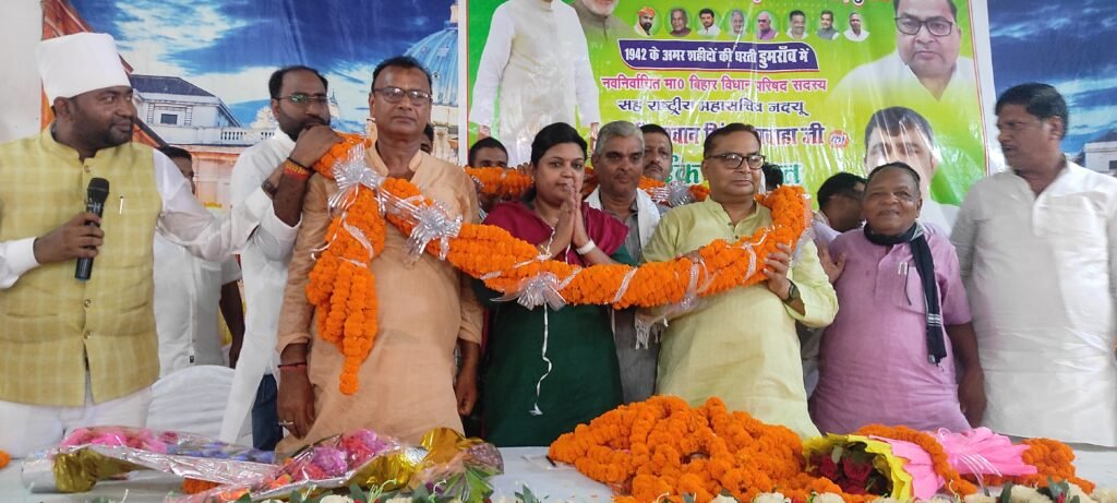 डुमरांव. बेरोजगार खाली नहीं रहेगा, किसान का खेत खाली नहीं रहेगा व गरीबों का पेट खाली नहीं रहेगा. उक्त बातें नगर भवन स्थित शहीद जगदीश मास्टर कुशवाहा सभागार में नागरिक अभिनंदन समारोह के दौरान विधान परिषद सदस्य श्रीभगवान कुशवाहा ने कही. उन्होंने कहा कि सूबे के मुखिया नीतीश कुमार बिहार के बारे में सोचते हैं, ताकि सबका विकास हो.