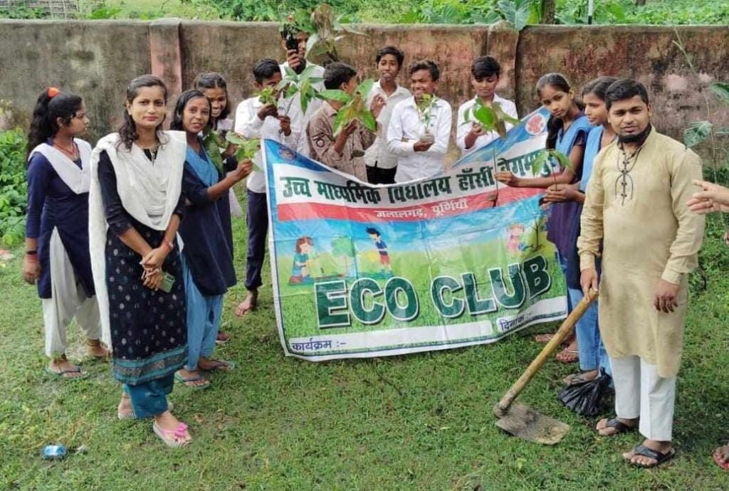 जलालगढ़ (पूर्णिया)। उच्च माध्यमिक विद्यालय, हांसी बेगमपुर के सभी छात्र-छात्राओं एवं शिक्षकों ने “शिक्षा सप्ताह” के दिवस- 7 मिशन लाइफ के लिए ईको क्लब अंतर्गत विद्यालय में पौधारोपण अभियान का आयोजन उत्साहपूर्वक किया गया।