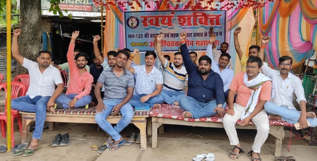 डुमरांव NH-120 स्टेशन रोड की बदहाली व सड़क पर जल जमाव के विरोध में अनिश्चितकालीन महाधरना शुरू