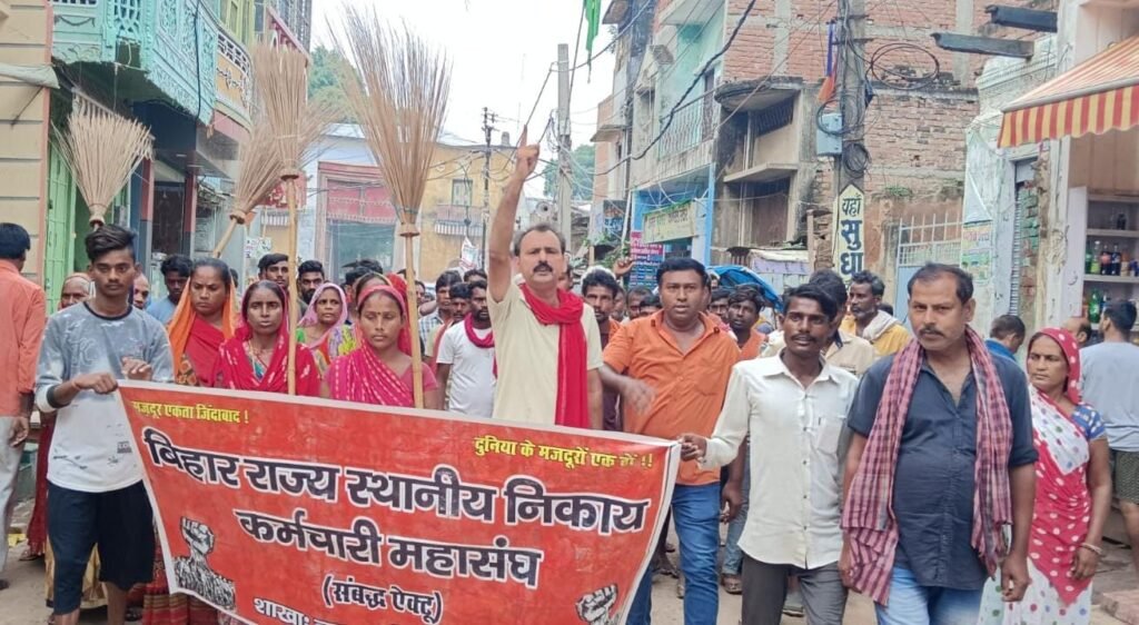 डुमरांव. नगर परिषद में कार्यरत सफाई कर्मी जो अपनी मांगों को लेकर पिछले तीन-चार सालों से बिहार राज्य स्थानीय निकाय कर्मचारी महासंघ (संबद्ध ऐक्टू) और भाकपा माले के नेतृत्व में आंदोलनरत थे. लगातार संघर्षरत सफ़ाई कर्मियों के आंदोलन के दबाव में डुमरांव नगर परिषद ने इनकी कुछ प्रमुख मांगों को पूर्व निर्धारित आश्वासन के आलोक में तीन सितंबर को बोर्ड की बैठक आयोजित की.