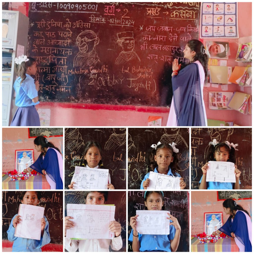 शास्त्री जी ने किसानों और सैनिकों को देश की रीढ़ मानते हुए, उनके उत्थान के लिए कार्य किया। दोनों नेताओं ने देश और दुनिया को यह सिखाया कि सादगी, अहिंसा और निष्ठा से भी महान लक्ष्य हासिल किए जा सकते हैं। उनका जीवन और कार्य आज भी प्रेरणा का स्रोत हैं। मौके पर विद्यालय के शिक्षक-शिक्षिका सहित बच्चे उपस्थित रहें।