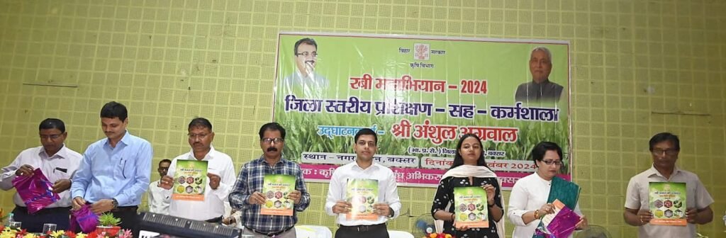 बक्सर। डीएम अंशुल अग्रवाल के द्वारा कृषि प्रौद्योगिकी प्रबंध अभिकरण (आत्मा) बक्सर के तत्वाधान में नगर भवन बक्सर में एक दिवसीय जिला स्तरीय रबी महाभियान का दीप प्रज्वलित कर आयोजन का शुभारंभ किया गया। इस दौरान आत्मा बक्सर द्वारा प्रकाशित रबी फसल की उत्पादन तकनीकी पुस्तिका का विमोचन जिला पदाधिकारी बक्सर द्वारा किया गया।