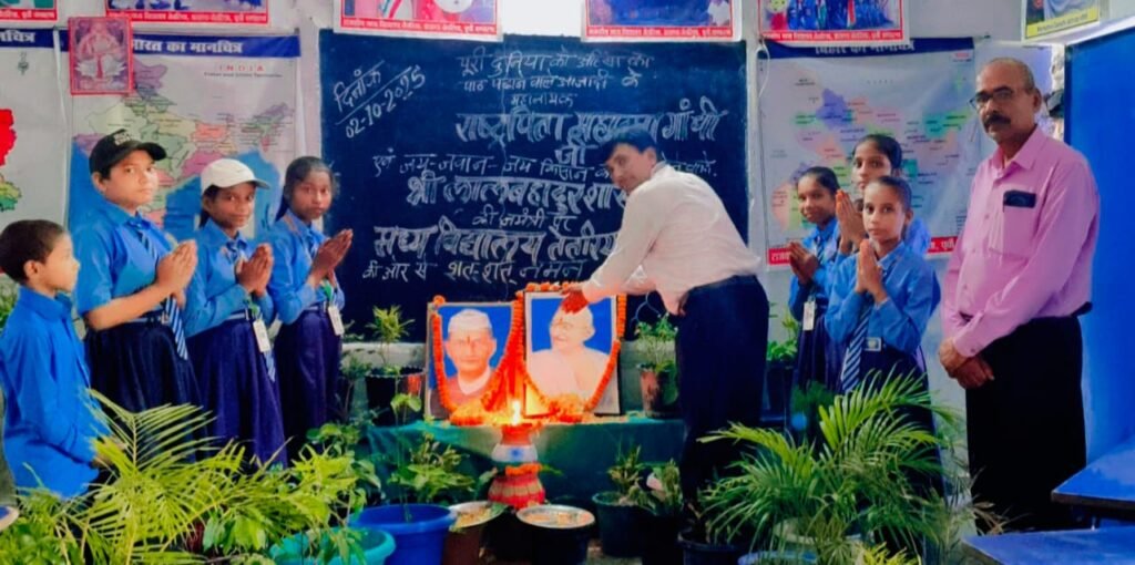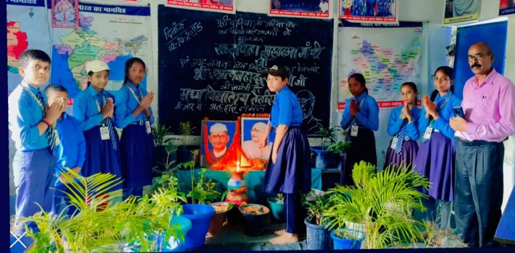 तेतरिया (पूर्वी चंपारण)। राजकीय मध्य विद्यालय तेतरिया में गुरुवार 02 अक्टूबर 2025 को राष्ट्रपिता महात्मा गांधी और भारत के पूर्व प्रधानमंत्री लाल बहादुर शास्त्री की जयंती श्रद्धा और उत्साह के साथ मनाई गई। विद्यालय अवकाश के बावजूद बच्चों और शिक्षकों की सक्रिय भागीदारी ने कार्यक्रम को खास बना दिया।