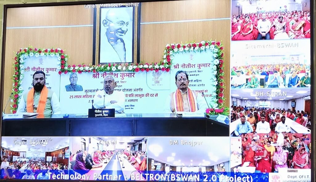 नगर भवन बक्सर में मुख्यमंत्री महिला रोजगार योजना अंतर्गत राज्य की 75 लाख महिला लाभुकों को ₹10 हजार प्रति लाभुक की दर से ₹7500 करोड़ की राशि का अंतरण कार्यक्रम का हुआ सीधा प्रसारण