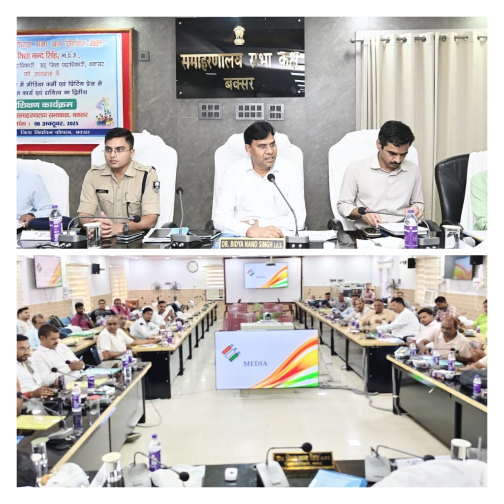 बक्सर । जिला निर्वाचन पदाधिकारी सह जिला पदाधिकारी बक्सर, डॉ विद्यानंद सिंह एवं पुलिस अधीक्षक बक्सर, श्री शुभम आर्य की संयुक्त अध्यक्षता में मतदान प्रक्रिया में मीडिया कर्मी से संबंधित कार्य एवं दायित्व का द्वितीय प्रशिक्षण कार्यक्रम समाहरणालय परिसर स्थित सभाकक्ष में की गई।