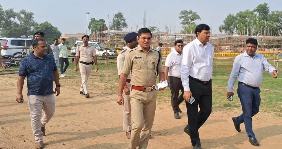मुख्यमंत्री के आगमन की तैयारी तेज़ : डीएम और एसपी ने किया राजहाई स्कूल मैदान का निरीक्षण