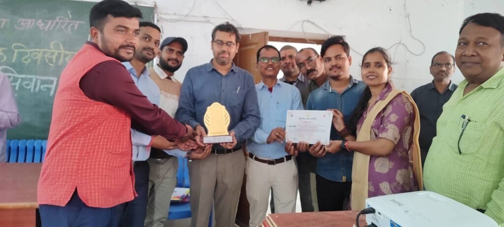 इस अवसर पर PBL के क्षेत्र में उत्कृष्ट प्रदर्शन करने वाले प्रखंडों — मैरवा, हसनपुरा, रघुनाथपुर, बड़हरिया, गुठनी और गोरेयाकोठी — को सम्मानित किया गया। सर्व शिक्षा अभियान, गुणवत्ता शिक्षा सिवान से राजीव जी, हरीश जी, विश्वरंजन जी तथा मंत्रा फॉर चेंज से आकाश जी ने चयनित प्रखंडों के प्रतिनिधियों को ट्रॉफी एवं प्रमाणपत्र प्रदान कर सम्मानित किया।