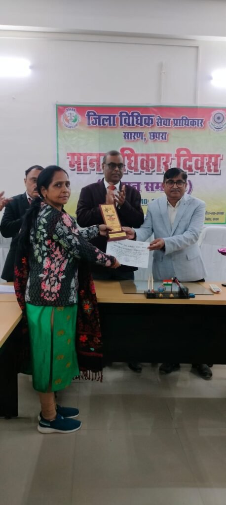 जिला विधिक सेवा प्राधिकार, सारण द्वारा आयोजित समारोह में मिला विशेष सम्मान