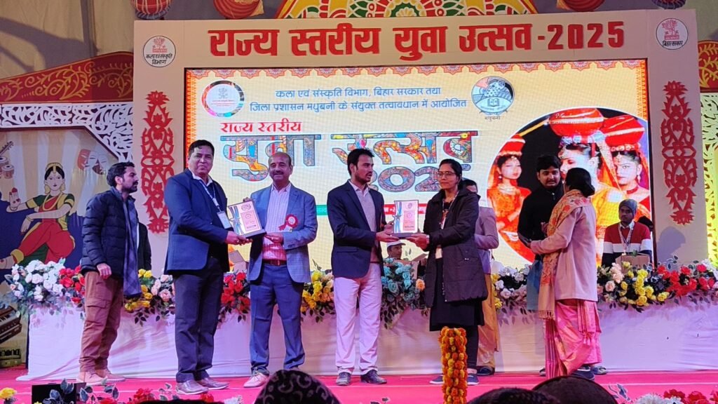 मधुबनी। राज्य स्तरीय युवा महोत्सव 2025 में बिहार के सभी 38 जिलों से आए प्रतिभाशाली युवाओं ने विभिन्न विधाओं में अपनी प्रतिभा का शानदार प्रदर्शन किया। इस बहुप्रतीक्षित सांस्कृतिक एवं बौद्धिक आयोजन में संगीत, नृत्य, नाटक, चित्रकला, कविता, क्विज और वक्तृता जैसी प्रतियोगिताओं का आयोजन किया गया। कार्यक्रम का उद्देश्य युवाओं की रचनात्मकता, नेतृत्व क्षमता और बौद्धिक कौशल को प्रोत्साहित करना रहा।